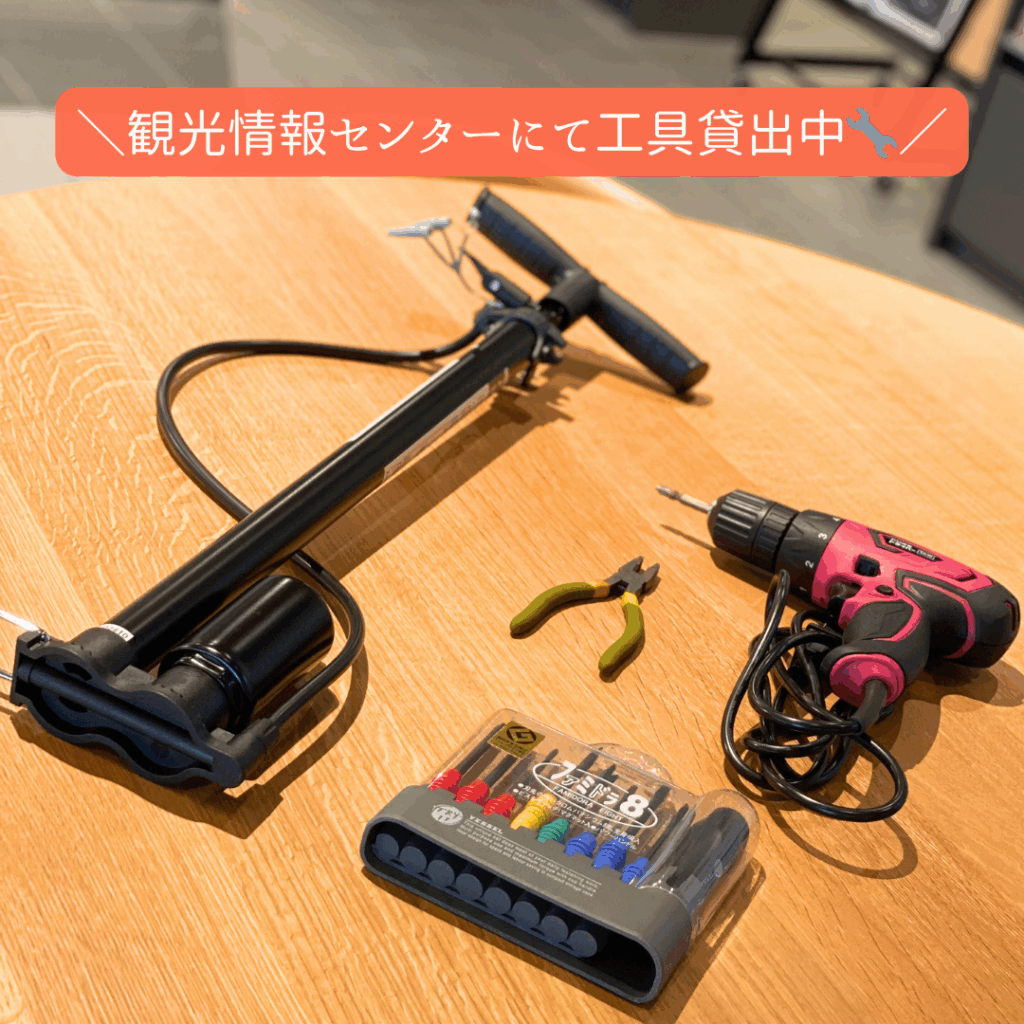 工具や空気入れは観光情報センターにて貸出しております🔧